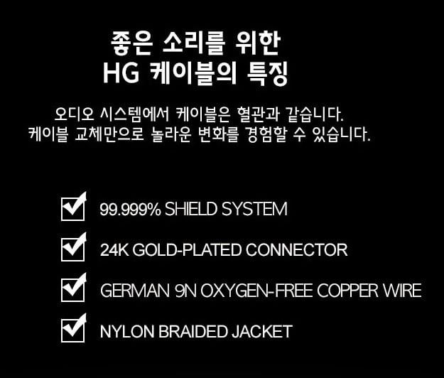 100% 국내생산! 숙련자가 직접 만든 케이블모든 공정에서 완성도 향상을 위해 좋은 소재 사용전자파 노이즈 차단 설계복충 쉴드 구조로 간섭 최소화